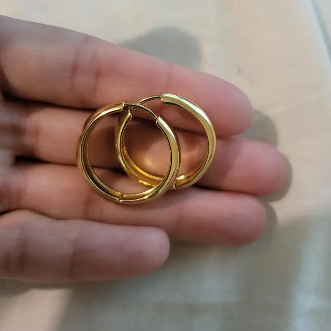 These hoop earrings are lightweight, shiny, and very comfortable to wear all day. They look elegant with both casual and dressy outfits. A wonderful everyday accessory!