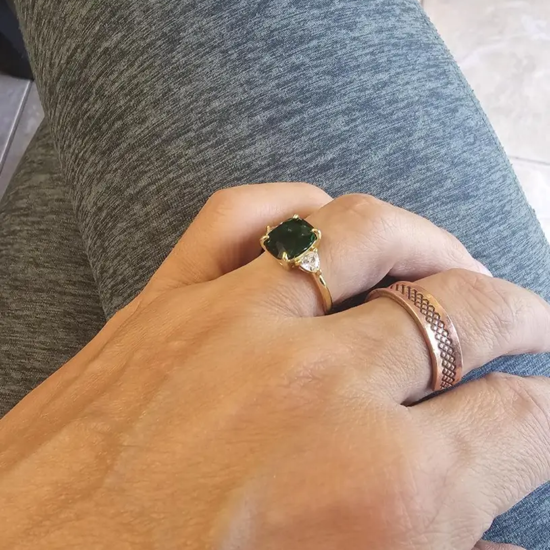 This ring is breathtaking. The deep green stone shines with elegance, and the gold band feels sturdy yet refined. A timeless piece that always earns compliments whenever I wear it.