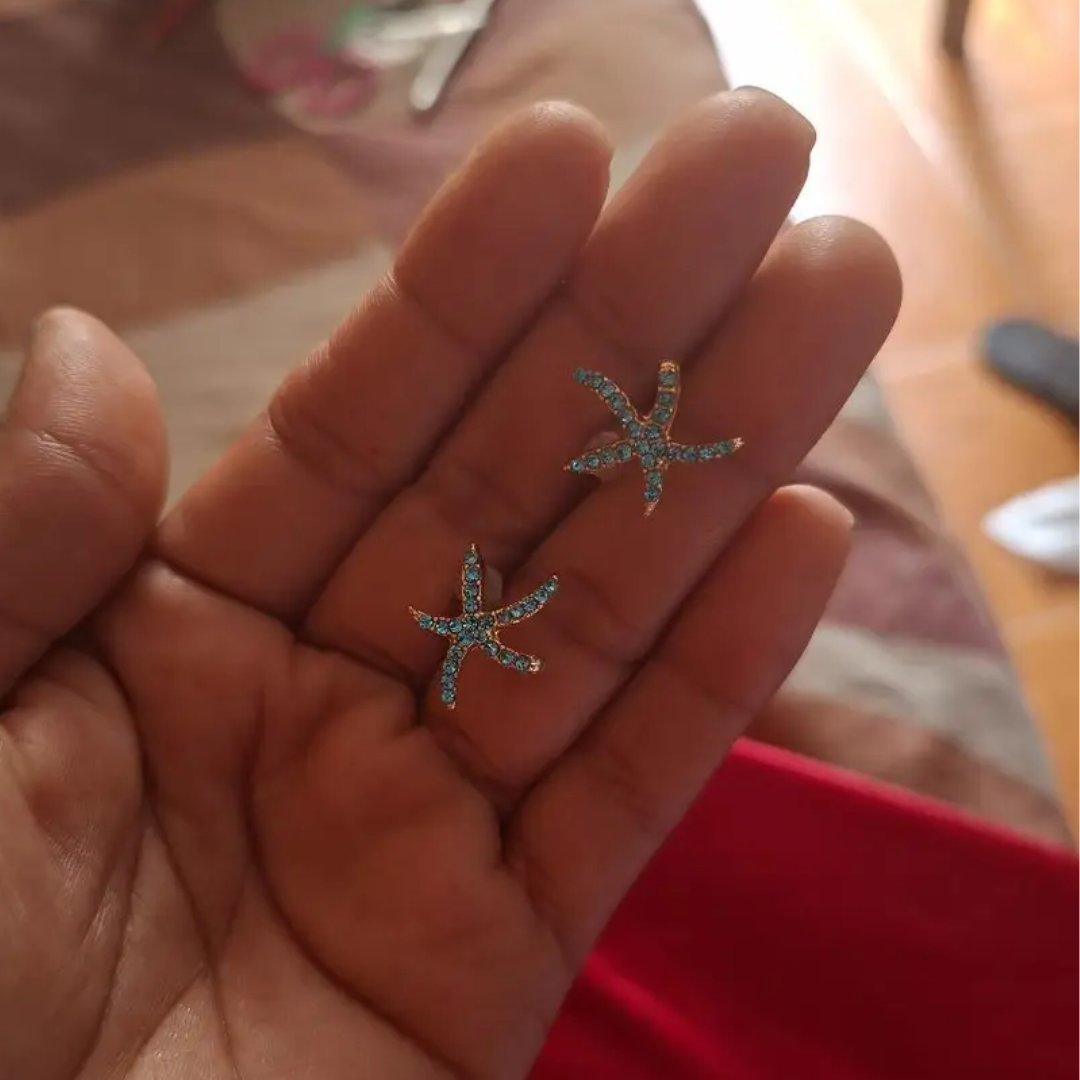 These starfish earrings are adorable and full of sparkle. The blue stones shine beautifully, reminding me of the ocean. Lightweight, comfortable, and perfect for adding a fun touch to any outfit.