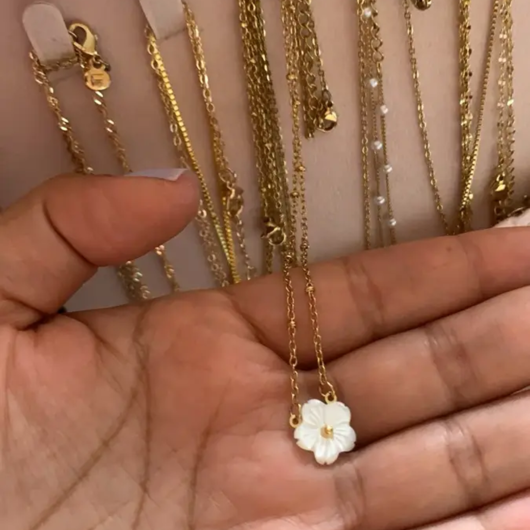 This necklace is so delicate and charming. The little flower pendant adds a sweet touch, and the chain feels light yet sturdy. Perfect for everyday wear or gifting.